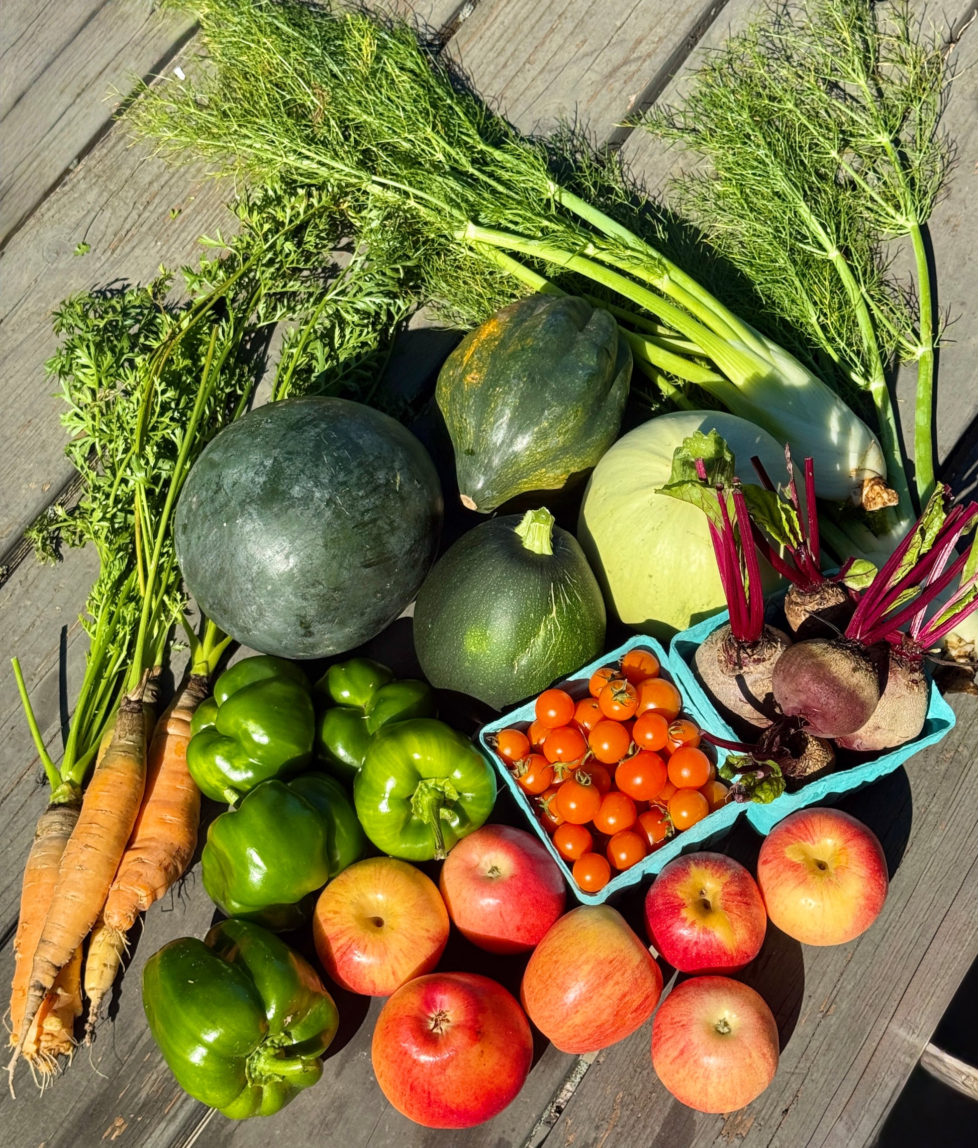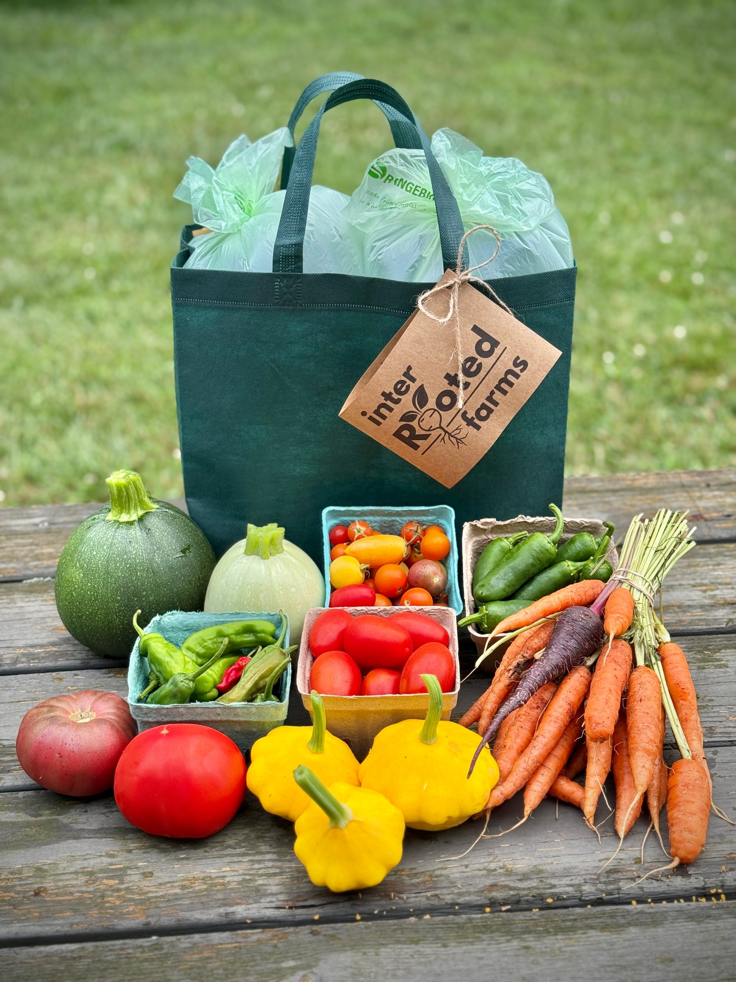 A curated bag of at least (7) farm-fresh produce items, filled to value.
